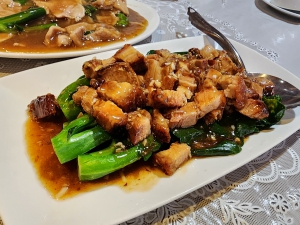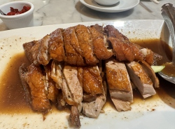 roasted duck, crispy roasted pork belly