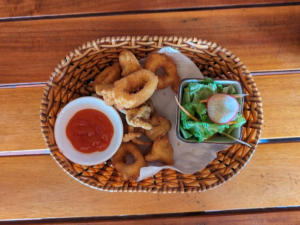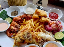 해변앞에 위치한 해산물 전문 레스토랑
