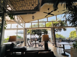 고급 해산물 요리를 선보이는 북적이는 음식점으로 해안이 내려다보이는 넓은 테라스가 있습니다.