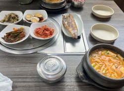 다소 외각에 위치한 유명한 해장국 분위기 현지 레스토랑