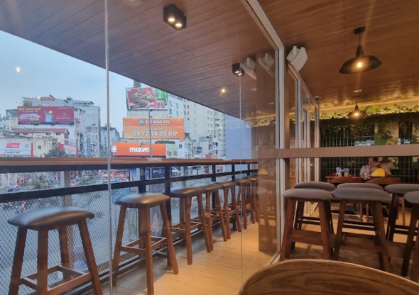 2층에서 바라보는 도시뷰는 만족스러워요. 사람이 많아 조금은 시끄러울 수 있어요