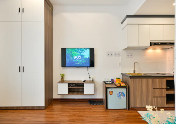객실이 넓고 간이 주방이 있어 편리해요