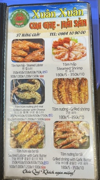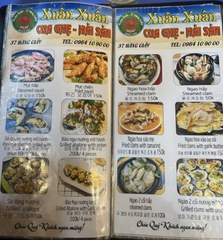 Ghẹ Hấp Xuân Xuân 37 Hàng Giầy에 대해 소개해줘