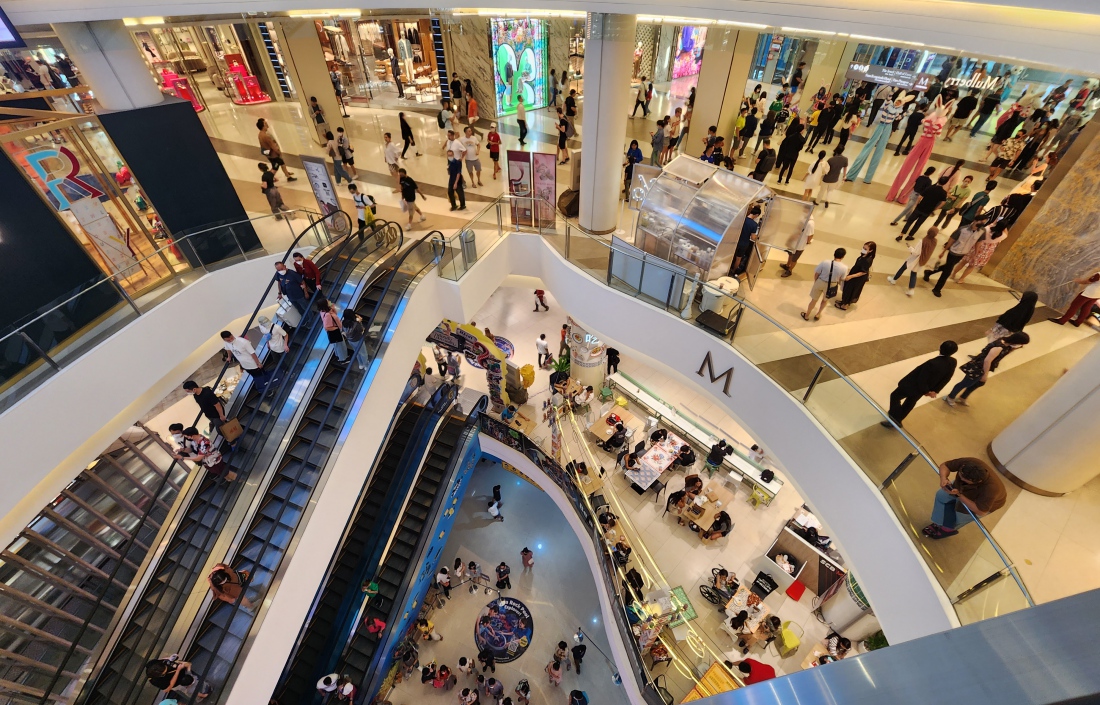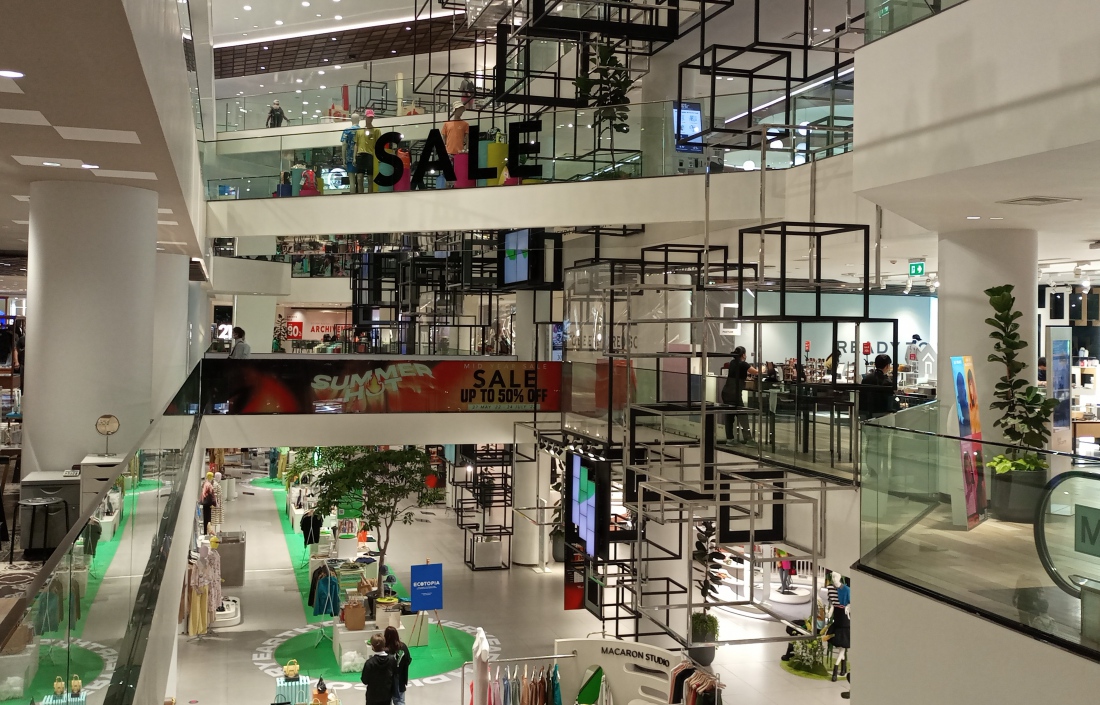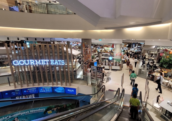 유명한 고급 브랜드의 부티크, 레스토랑, 수족관, 볼링장, 멀티플렉스 영화관이 모여 있는 대규모 쇼핑몰
