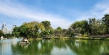 도심 중앙 공원에 잘 다듬은 잔디밭, 놀이터, 대여용 보트가 마련된 인공 호수가 있습니다.