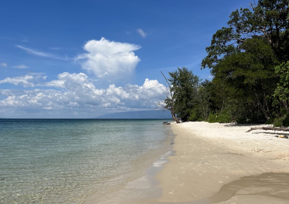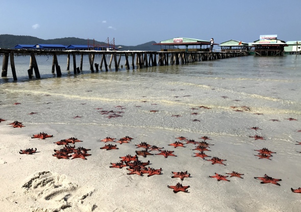 수상 식당과 잔잔하고 깨끗한 바다를 즐길 수 있는 백사장으로 곳곳에서 붉은 불가사리를 볼 수 있습니다.
