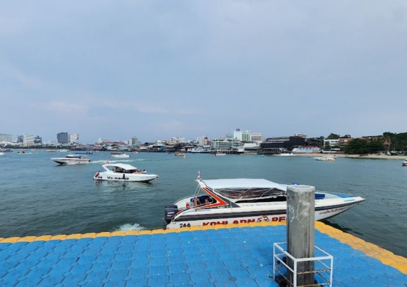 파타야 명소인 꺼란으로 가는 페리보트, 스피드보트를 타는 선착장
