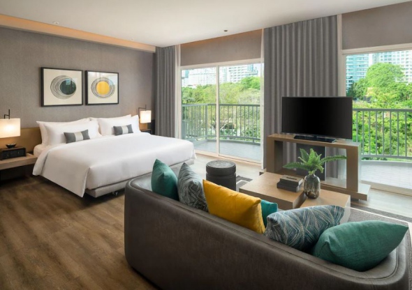 호텔룸은 깔끔하며 직원들이 친절하고 웰컴티는 맛있었음. 조식은 다양하지만 맛이 아쉬움. 수영장은 관리가 아쉬웠음. 방은 방음이 안 되고 작은 크기여서 불편했고 노후된 곳이 많아 5성급 기준엔 미치지 못하지만 전반적으로 가격 대비 가성비적으로 좋음.