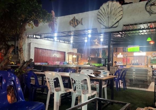 로컬 무한리필 무카타 식당으로, 고기와 해산물을 화로나 육수에 끓여 먹음. 해산물은 새우, 굴, 오징어 등이 있으며 셀프 쏨땀 코너도 있어 신기함. 저렴한 가격에 비해 종류가 다양하고 가성비 좋음. 야외라 더운 편이지만 선풍기 이용 가능하고 직원들이 친절하게 연료 추가나 음료 리필도 해줌. 고기 소진 시 늦게 채워줘 아쉬움 있지만, 전반적으로 만족스러운 식사 가능.