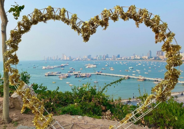 파타야 해변이 한눈에 보이는 뷰포인트임. 걸어가긴 힘들고 볼트, 그랩, 오토바이 이용 추천함. 하트모양 포토존과 파타야시티 조형물도 있음. 노을 질 때 바다와 불빛 예쁨. 근처에 카페와 운동기구 있는 놀이터 있음. 들개가 많으니 밤에 조심. 워킹스트릿에서 오토바이로 왕복 100바트 정도면 충분