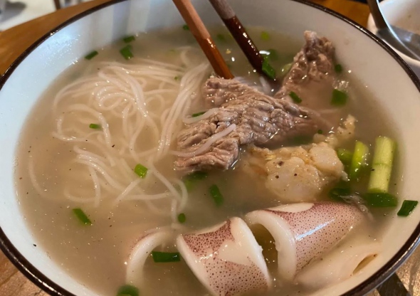 오징어 쌀국수를 맛볼 수 있는 식당으로, 깔끔한 매장과 저렴한 가격이 장점. 국물 맛은 심심한 편이라 소스를 섞어 조합해 먹는 것이 특징이며, 면은 부드럽고 가볍게 넘어가는 식감이지만 오징어와 어묵은 호불호가 갈릴 수 있고, 진한 맛을 기대하는 사람에게는 다소 아쉬울 수 있음 사탕수수 음료는 신선하고 호평을 받았으나, 위생 문제나 매장의 에어컨 가동 여부에 불만을 제기하는 사람도 있다. 한국인을 위한 메뉴판이 제공되고, 고수와 향신료를 싫어하는 사람도 주문 전에 조율이 가능. 현지식 느낌을 즐기거나 가볍고 독특한 맛을 원하는 사람에게 적합하며, 가족 단위 방문객들에게는 어린이 메뉴가 별도로 준비되어 있으며 전반적으로 큰 기대 없이 방문하면 무난히 즐길 수 있지만, 강렬한 맛을 기대하는 사람들에게는 추천하지 않음