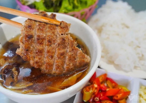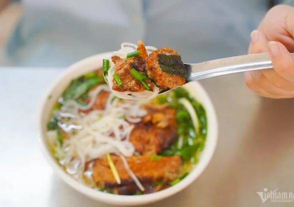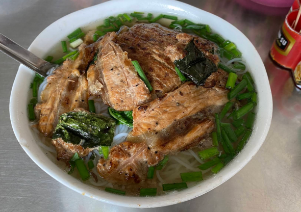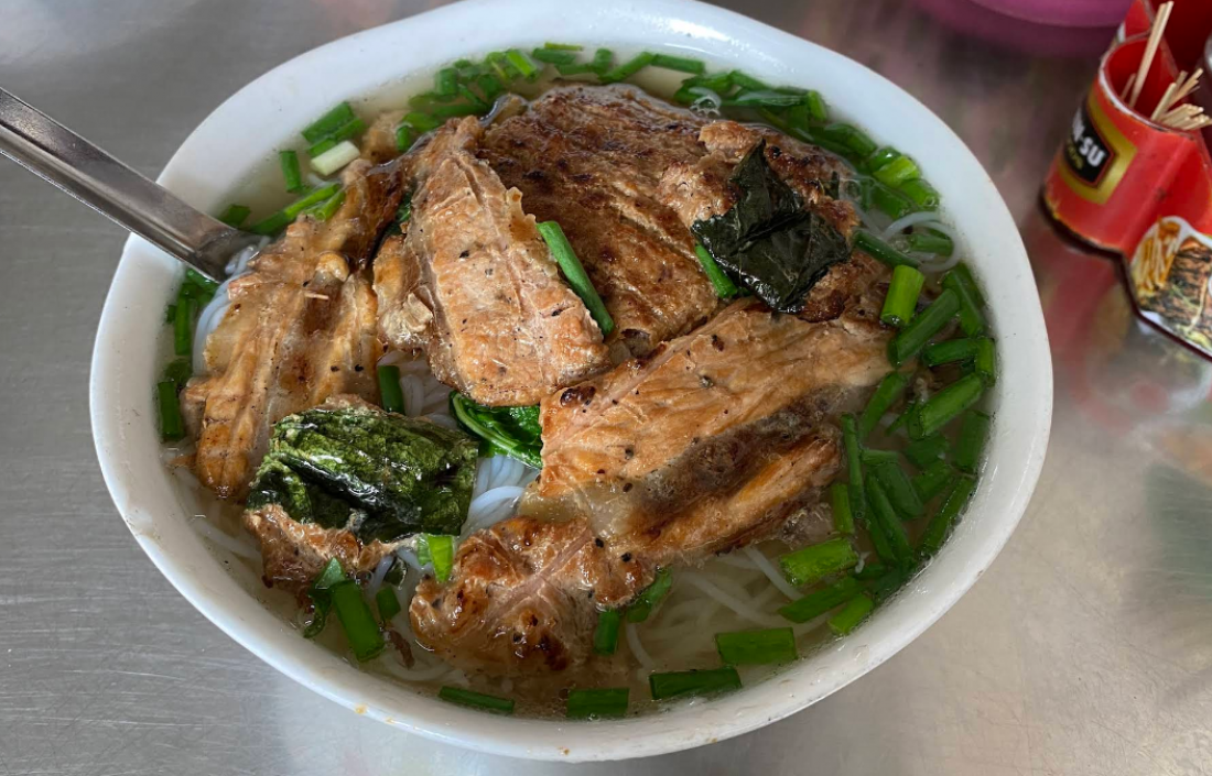 각 그릇에는 당면 국수, 돼지고기 롤, 다진 돼지고기 롤, 강 뼈 잎으로 감은 춘권, 야채, 국물에 흠뻑 젖어 있습니다. 국물에는 양파와 고수의 달콤하고 향긋한 맛이 나고 야채의 짙은 맛과 구운 돼지고기 패티의 진한 맛이 어우러져 있습니다.