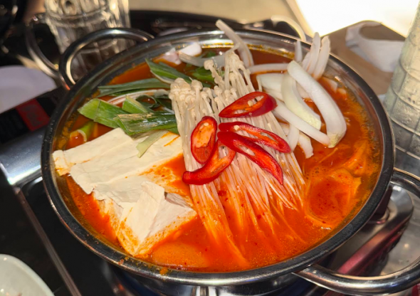 오징어볶음, 김치탕, 순두부찌개, 전