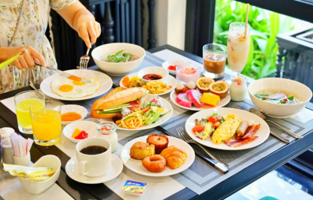 조용하고 매우 다양한 조식 종류